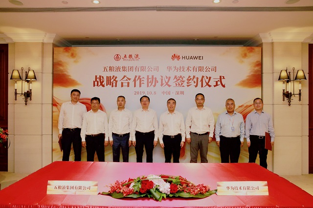 [中国,深圳,2019年10月8日] 10月8日,五粮液集团有限公司(以下简称“五粮液集团”)与华为技术有限公司(以下简称“华为公司”)签署战略合作协议,五粮液集团总经理、五粮液股份有限公司董事长曾从钦、华为公司董事长梁华参加签约仪式。